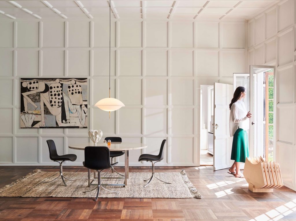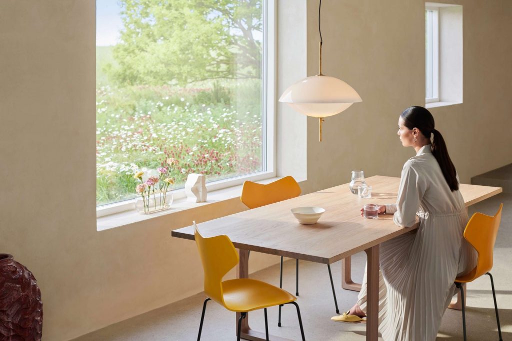 The seashell-inspired Clam™ pendant lamp in mouth-blown opal glass and brass, designed by Ahm & Lund, opens to reveal a luminescent pearl of light within. The contemporary design has a timeless aesthetic, illuminating spaces with mood-enhancing light.