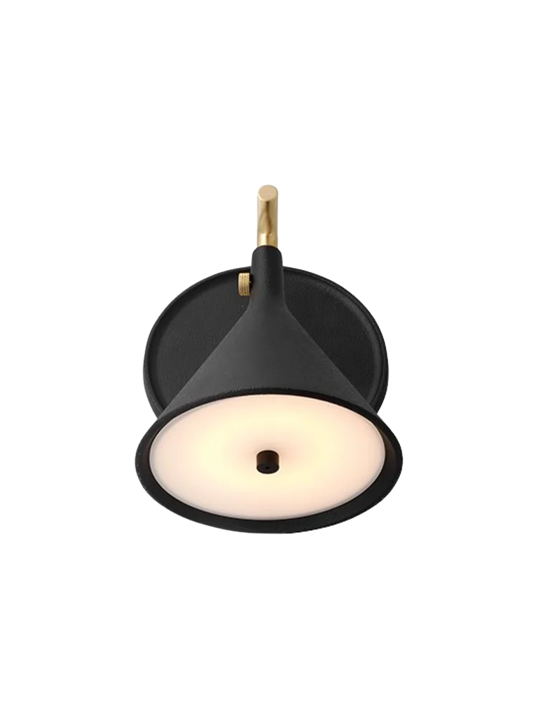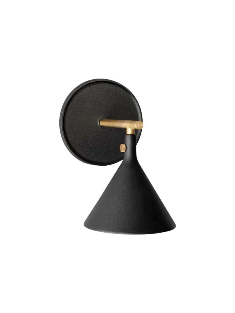 The Cast Sconce Wall Lamp merges triangular, linear and round elements into a sophisticated silhouette. Purposeful and with presence, its geometric form is shaped from black metal detailed with brass. Adding to the ambience of a room both when switched on and off, the lamp is fitted with a replaceable LED light bringing soft, glare-free light to a wide range of spaces, including bath and shower rooms and outdoors, thanks to its IP44 rating.