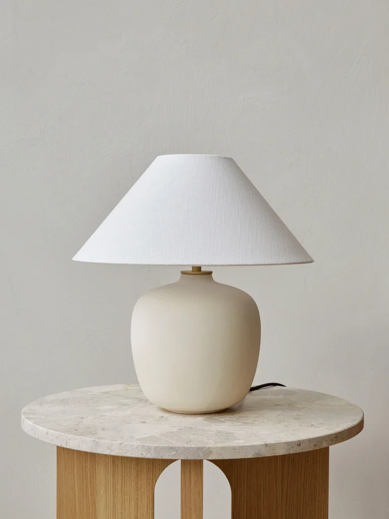 Taking its design cues from childhood homes filled with treasures shaped by the human hand, the Torso Table Lamp by Krøyer-Sætter-Lassen is a modern lamp with a timeless look. Uniting raw stoneware with ethereal linen and functional metal details, the portly base, tactile shade and brass touch dimmer create the perfect balance between hard and soft, beauty and purpose.