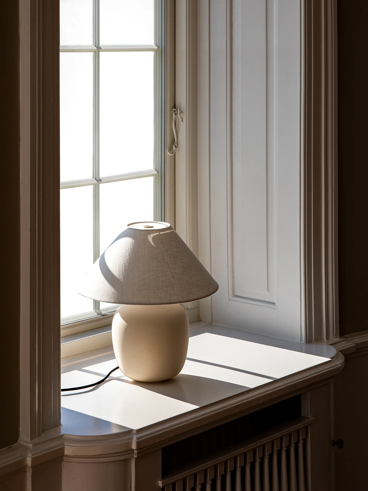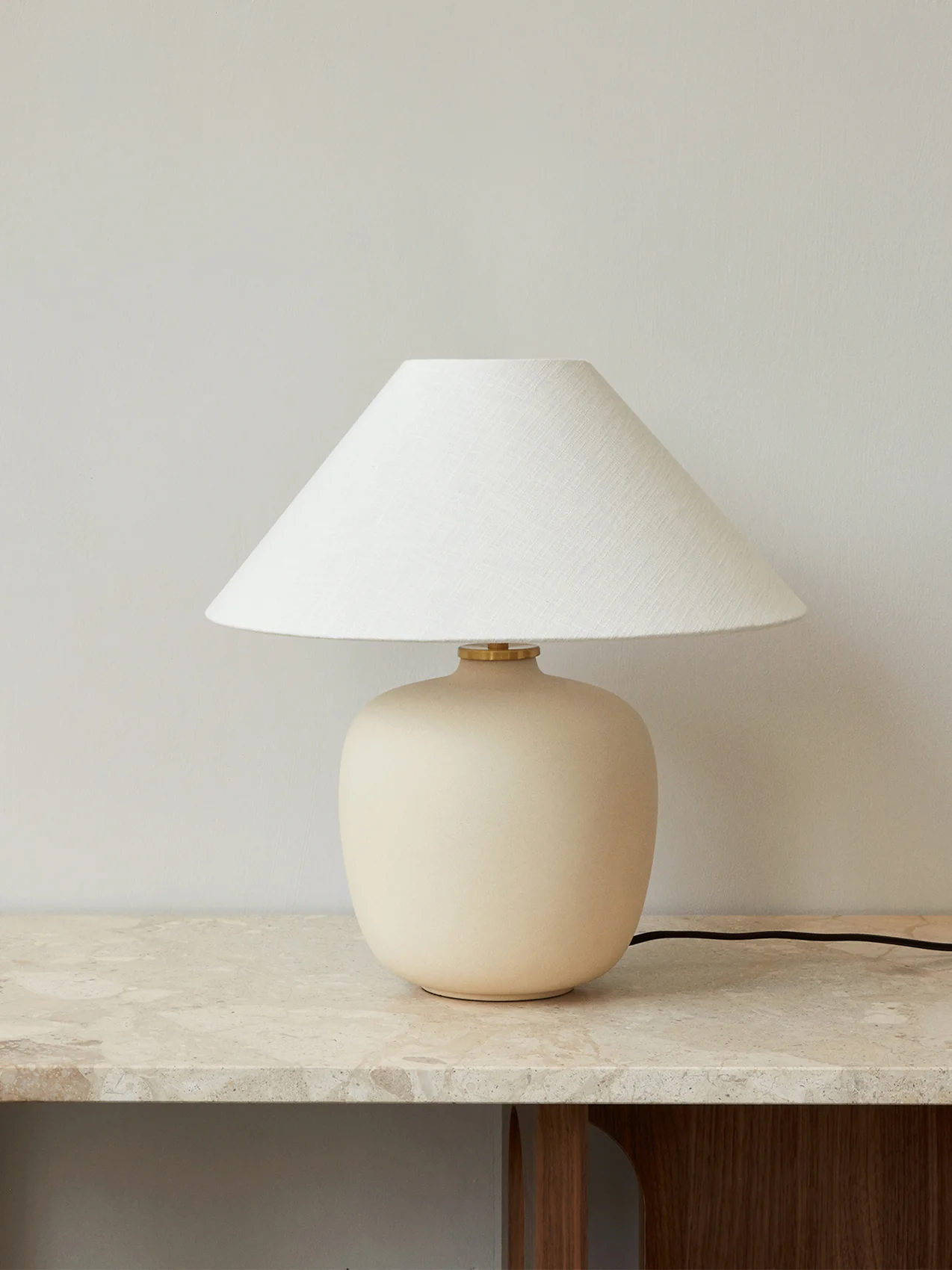 Taking its design cues from childhood homes filled with treasures shaped by the human hand, the Torso Table Lamp by Krøyer-Sætter-Lassen is a modern lamp with a timeless look. Uniting raw stoneware with ethereal linen and functional metal details, the portly base, tactile shade and brass touch dimmer create the perfect balance between hard and soft, beauty and purpose.