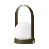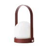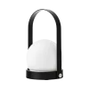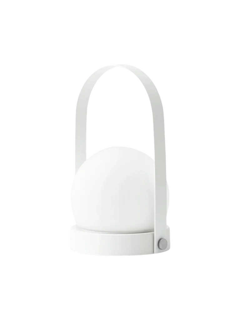 With a sleek, functional handle and a warm orb of light nestled gently in a basket-like base, the Carrie Portable Lamp is useful anywhere. Crafted in glass and metal – with a plastic base version available for outdoor use – Carrie is unique for its multiple uses and mutability: the cordless design comes with a concealed USB charger at its base for easy charging. The warm, ambient light is adjustable to three settings, and fully charged, it will stay on for at least ten hours on highest setting. Made with freedom and flexibility in mind, it comes in a range of beautiful colours.