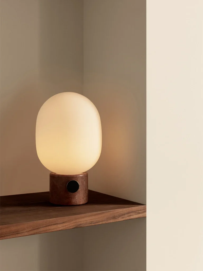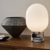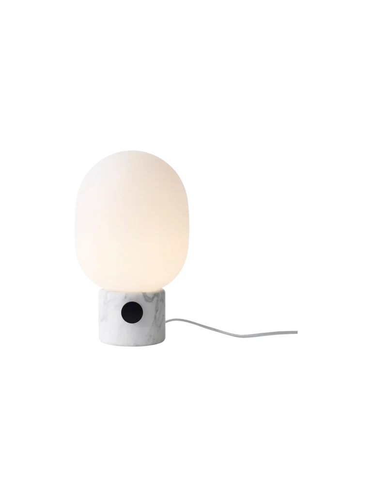 An instant classic, the JWDA Table Lamp is the kind of sculptural piece that brings new life to a room, illuminating a window sill, shelf or side table with its warm, glare-free glow. Inspired by traditional oil lamps, its contrast of rounded opal glass against a solid base creates a balanced and intriguing silhouette.