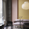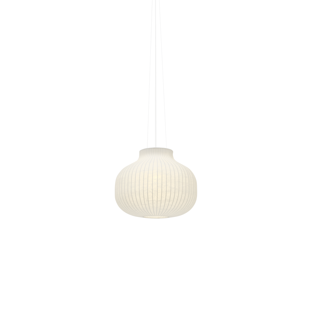 The Strand Pendant Lamp is designed with soft, playful forms for a modern expression. The design provides both diffused lighting and direct lighting, the latter through its top and bottom opening. The design is made in a sprayed cocoon material that consists of tiny strands for a complex, intriguing structure that, paired with its modern form, gives the Strand Pendant Lamp an almost cloud-like appearance.