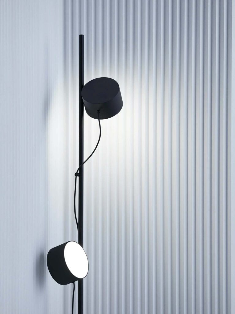 The Post Floor Lamp is an innovative modular lighting design with an archetypal appearance, graphic lines and forward-thinking functionalities. Exploring the utmost flexibility of a magnetic joint, the individual lighting units of the design can be positioned, turned and dimmed up and down to individual needs. Use the magnetic cable drops to position the cords on the rod. The Post Floor Lamp comes with two lighting units.