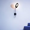 Wall adjustable lamps with moulded diffuser in sandblasted polycarbonate matt white, for widespread warm lighting. Stem in black painted aluminium, wall bracket in polymer filled with glass fibres.