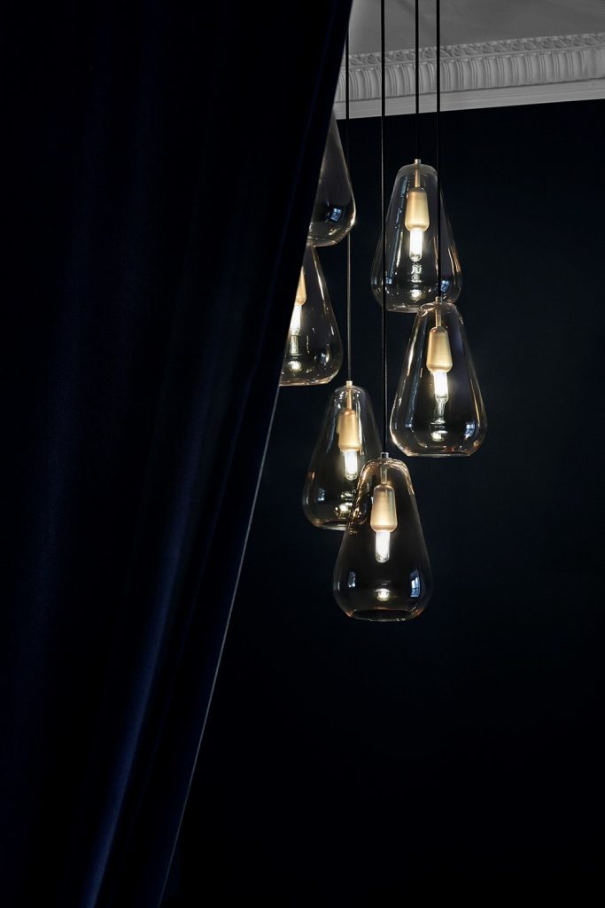 The Anoli collection is made of materials of the highest quality and crafted by skilled artisans. Its expression is simple and consists of mouth-blown drop shaped glass pendants. Bring the unique Nordic light indoor with Anoli 6. Bulbs not included.