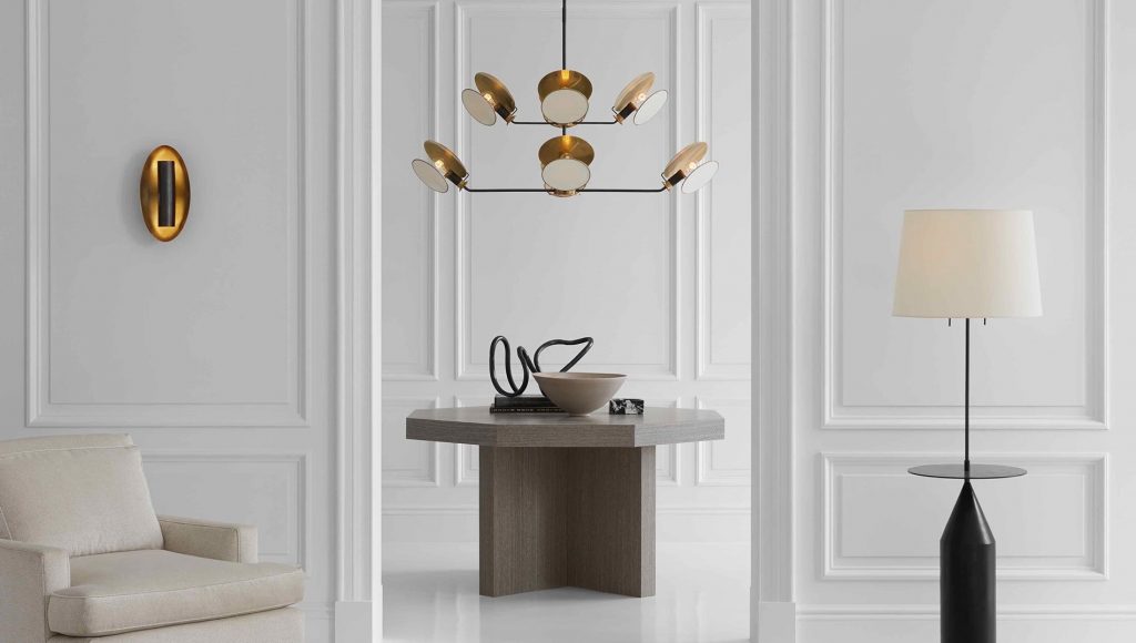 Osiris Large Reflector Chandelier with Linen Diffuser. Choose finish.