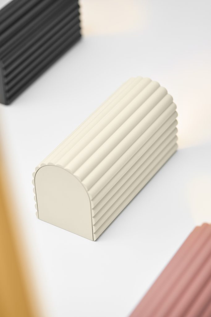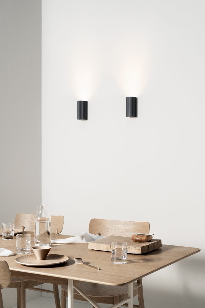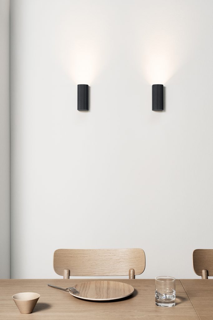 Playing with an expression of soft pleated fabrics, the Donna wall adds a feel of craftsmanship and warmth to any interior. The form is inspired by textiles used in high fashion and the contradiction of recreating softness using a hard material. The upward light direction in combination with the lamps sophisticated personality creates a welcoming atmosphere. Made from thin, lightweight aluminium with a smooth matte finish, the Donna wall is as versatile as it is beautiful.
