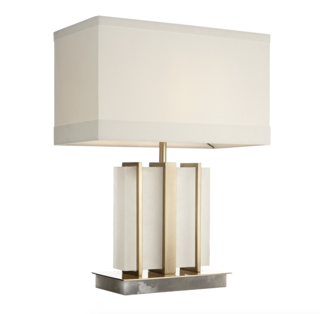 Kelcie antique brass metal table lamp.
