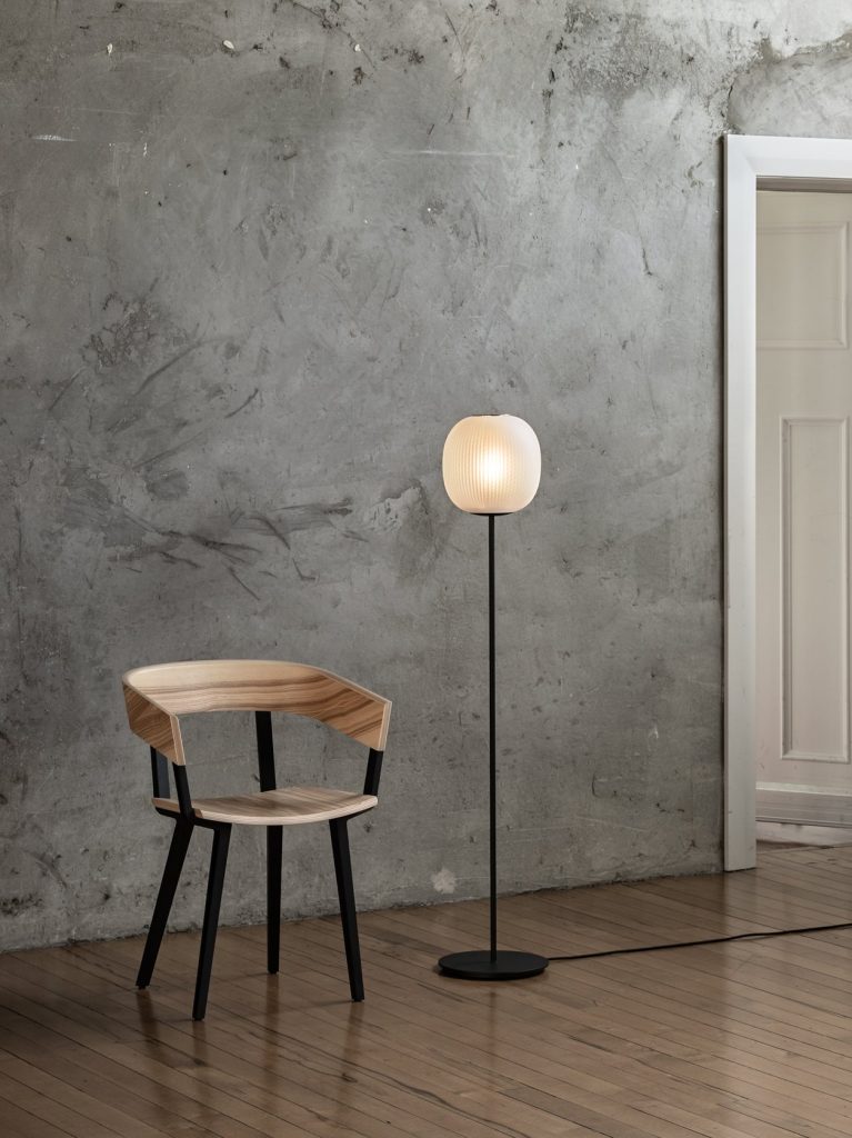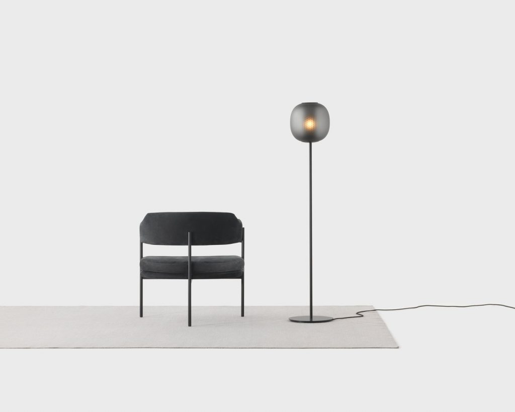 The Bloom Floor Lights’ super-elliptical form is inspired by the gentle dynamic flow of paper lanterns. Its glorious lit effect is the result of transparency and light. Two contrasting materials – a finely perforated mesh core and frosted blown glass, combine to project a soft focus texture onto the inside of the shade.