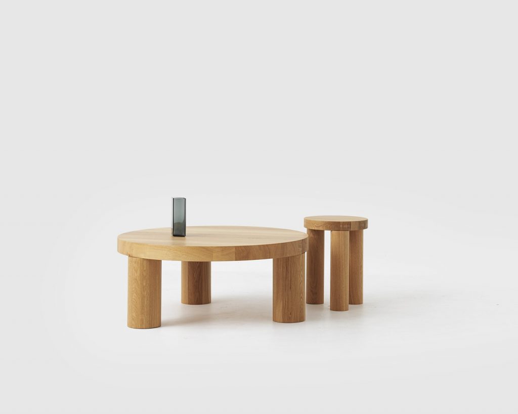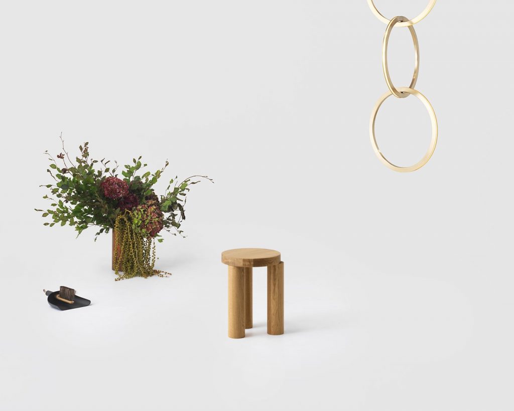 The Offset Stool / Side table is a playful and irregular screw together furniture piece, which displays the beauty of solid oak in generous proportions. Each Offset leg attaches via an off-centre threaded connector,, which enables the legs to locate themselves in an individualised and adjustable position.