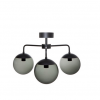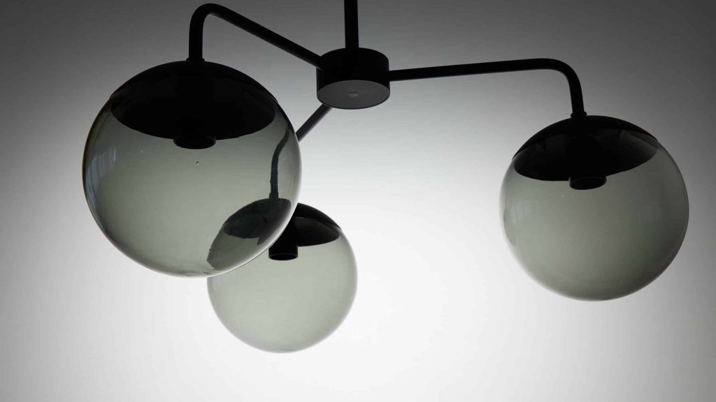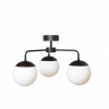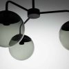 Globes of blown glass. The metal parts of the luminaire are made of iron and brass and are all lacquered. Black textile cord. Bulbs included.