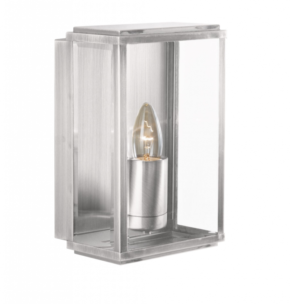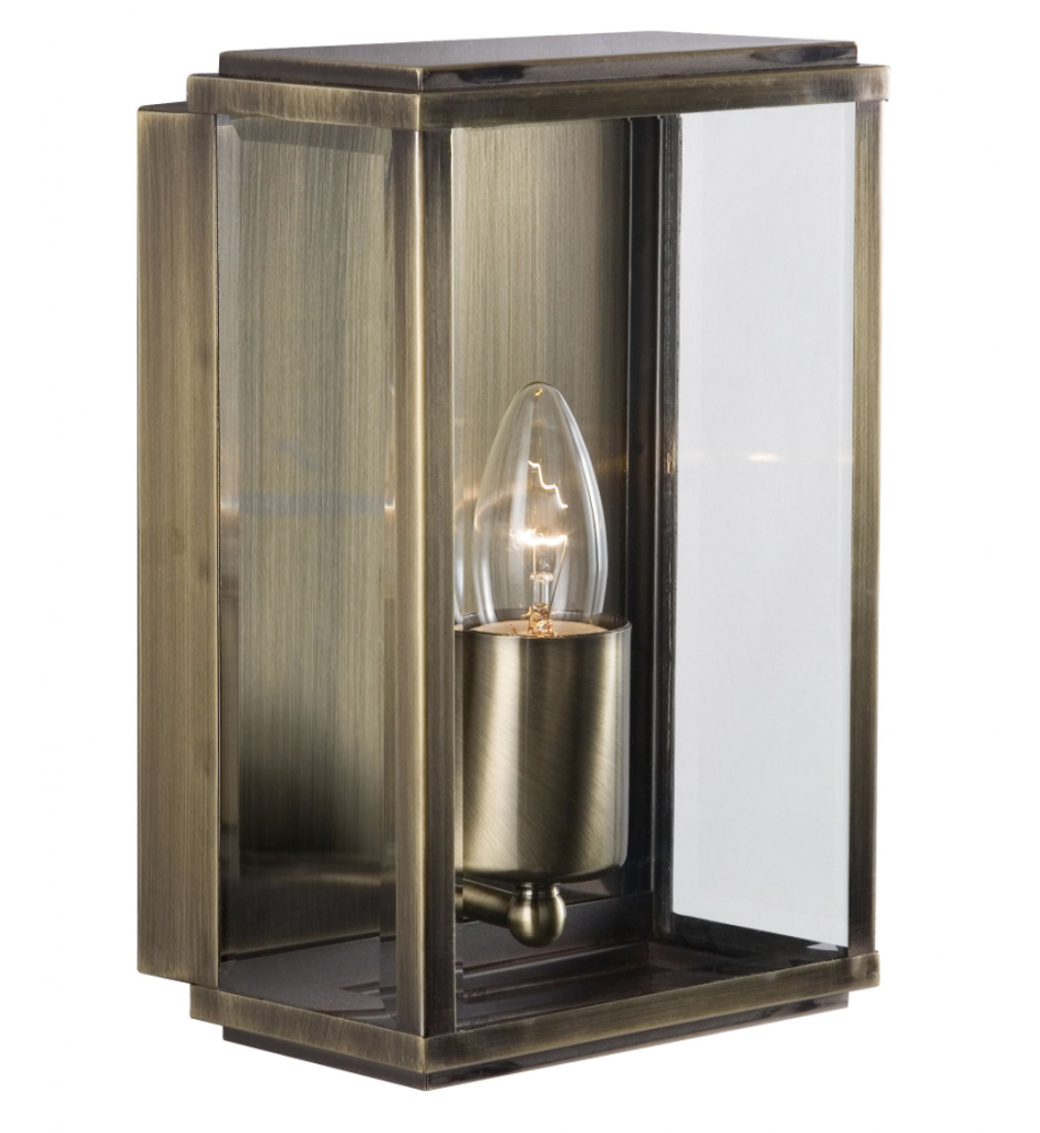 This Rectangular Outdoor Light with Clear Bevelled Glass is simple, classic and elegant. The box features clear bevelled glass panels around the sides and is lit by an attractive candle style light fitting.