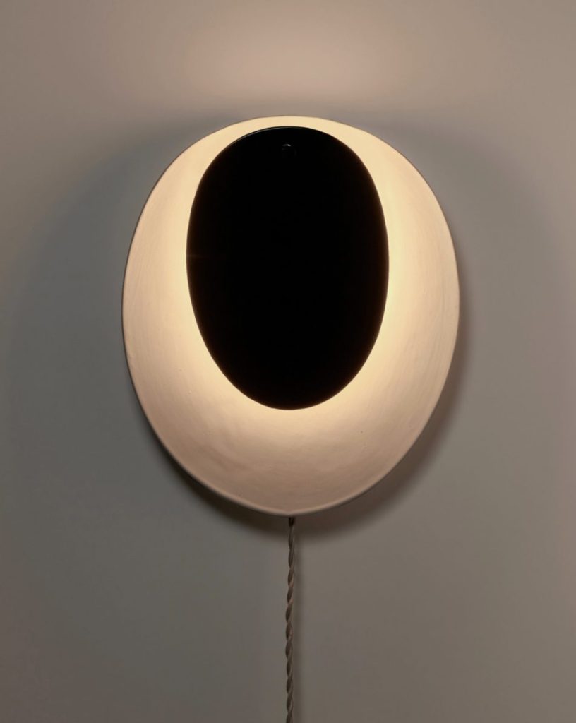 Nebula is a collection of stylised lamps that infuse spaces with light and highlight the lamps’ refined glaze. Each lamp consists of two meticulously rounded ceramic shapes. A hushed light emanates from the two mirroring discs, reminiscent of the nebula that you sometimes see in the night-time sky.