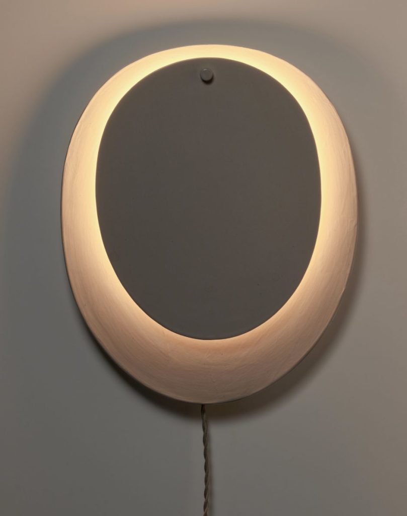 Nebula is a collection of stylised lamps that infuse spaces with light and highlight the lamps’ refined glaze. Each lamp consists of two meticulously rounded ceramic shapes. A hushed light emanates from the two mirroring discs, reminiscent of the nebula that you sometimes see in the night-time sky.