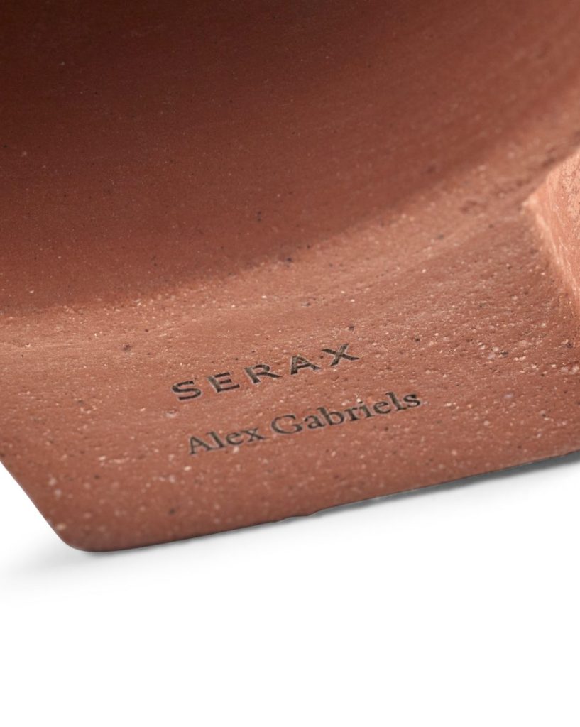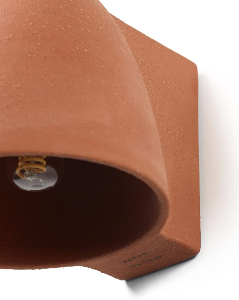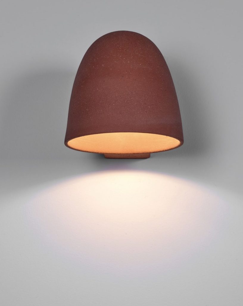 Alex Gabriels’s ceramics combine a sleek design with earthy tactility. The lamp lets the light shine through in a very subtle way while casting a soft side light over the rough chamotte clay and highlighting the pottery’s beautiful texture.