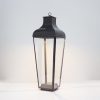 Floor lantern with pagoda structure and handle (eyelet) with outside fitted clear glass, indirect lighting.