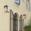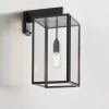 Eclectic wall light in dark bronze with outside fitted clear glass, closed top and open bottom. Wall bracket in lacquered bronze stainless steel with cable transit. Bracket sold separately.