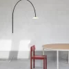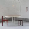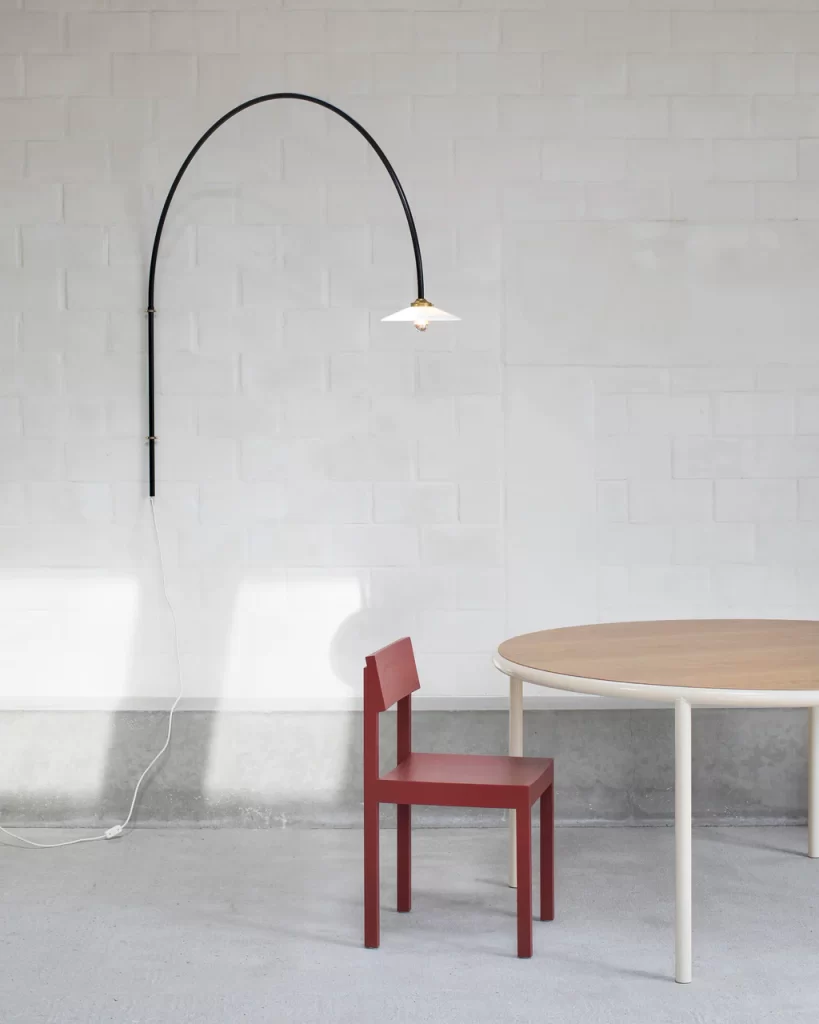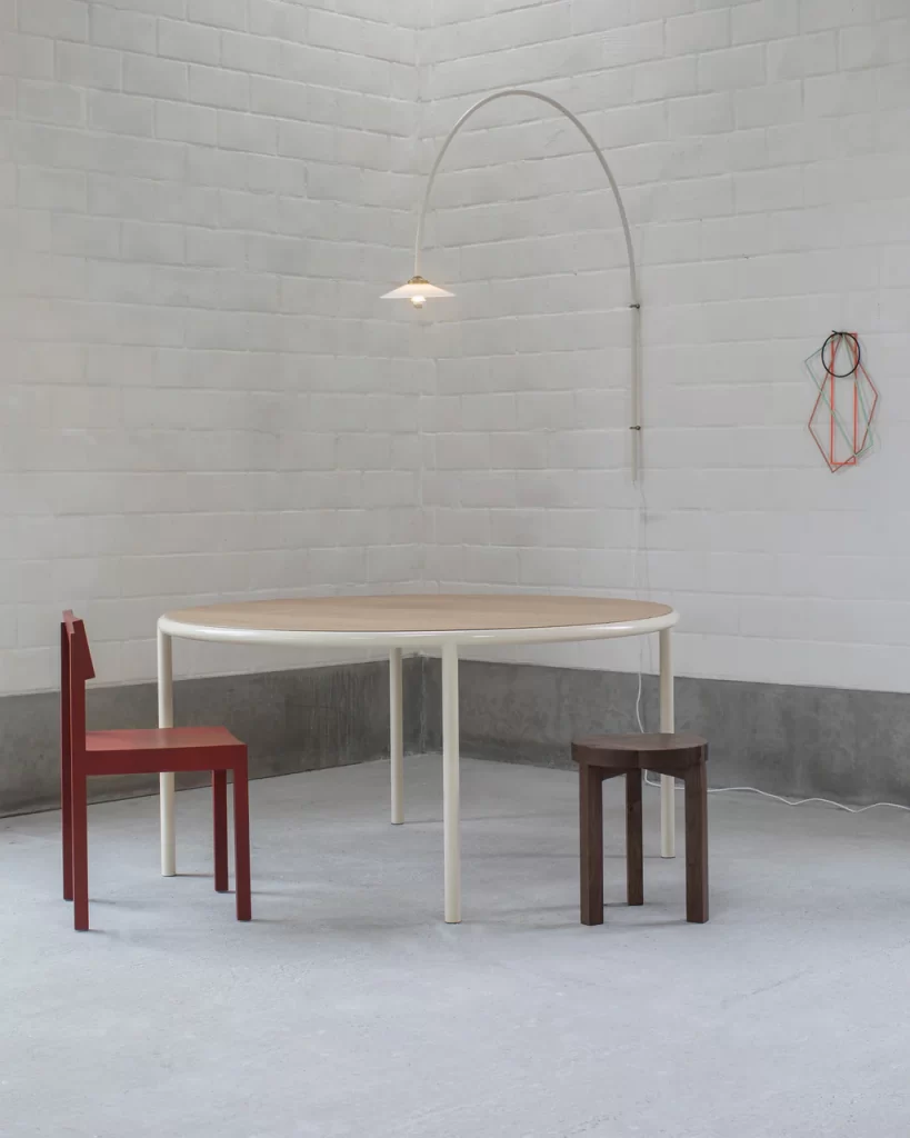 Like all Muller Van Severen’s furniture, the hanging lamps add a sober but colourful line to the interior.